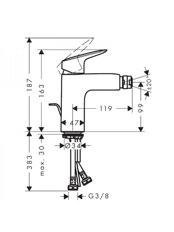 Jednoručna slavina za bide dolazi u kompletu sa podsklopom.