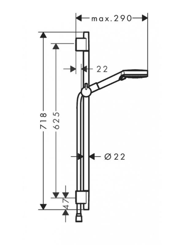 Zidni nosači su od plastike, razmak bušenja 625mm
