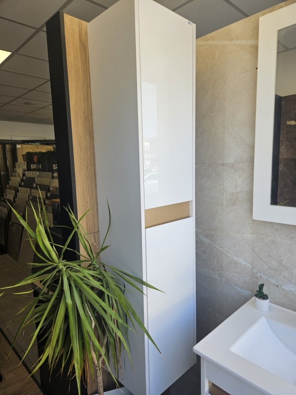 Visoki ormarić za maksimalno iskorišćenje prostora. Unutrašnje police za organizovano odlaganje. Dekorativna horizontalna letvica koja se može birati u 5.različitih boja /zlatna, siva, boja drveta, bela i crna).