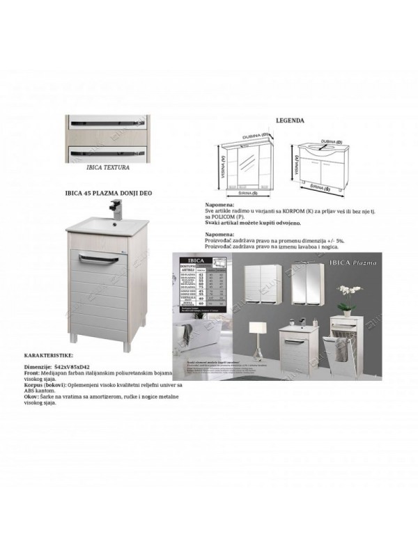 Dimenzije: širina 45cm, visina 85cm, dubina 42cm