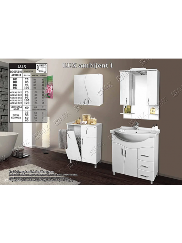 SRBIJA Kontesa 95 DONJI DEO Kupatilski ormarić donji Lux Kontesa 95 je kvalitetno izrađen ormarić sa lavaboom, dimenzija 95x85x4.. Product #: LUX139 Regular price: 37,790.00 RSD 37,790.00 RSD Na stanju