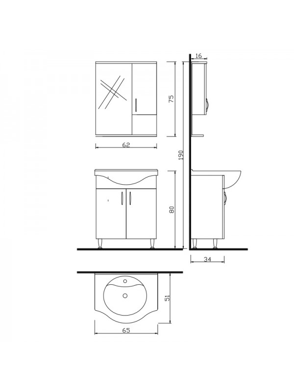 Kupatilski nameštaj od medijapana Kontesa Trend 65. donji deo-bela boja.
