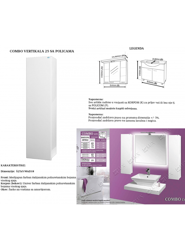 Materijal: front - medijapan farban italijanskim poliuretanskim bojama visokog sjaja