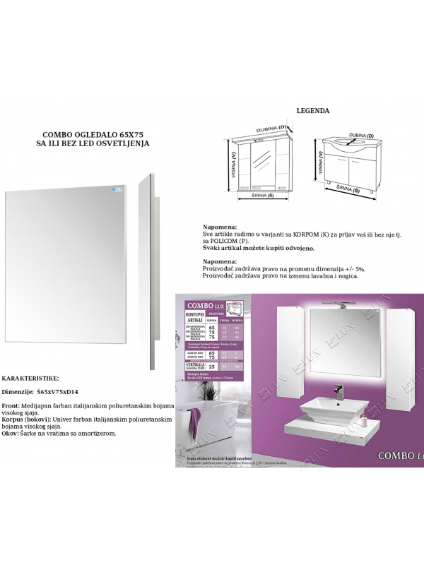 Ogledalo sa LED rasvetom Combo LuxDimenzije: 65x75x6cmMontaža: Zidna ogledalaSa setom za montažu