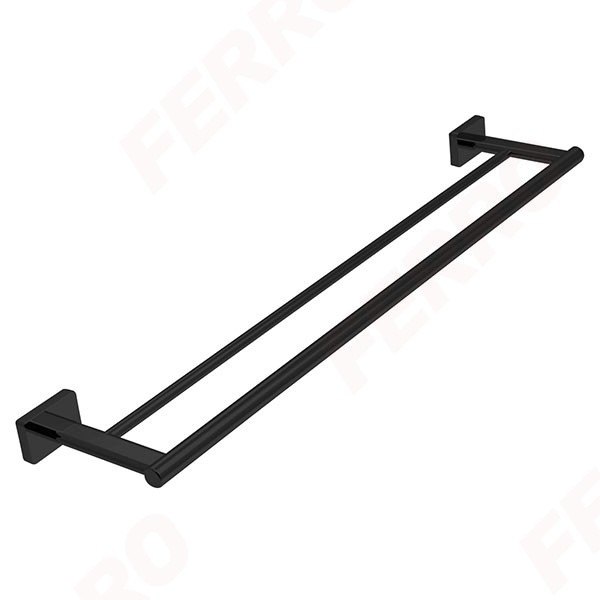 FERRO GRETA BLACK dvostruki drazac za peškir 600 mm AGR10BL Dupli držač peškira elegantnog dizajna u mat crnoj boji.  Dimenzije: 12,2X60 cm.. Product #: ga00368 Regular price: 6,450.00 RSD 6,450.00 RSD Na stanju