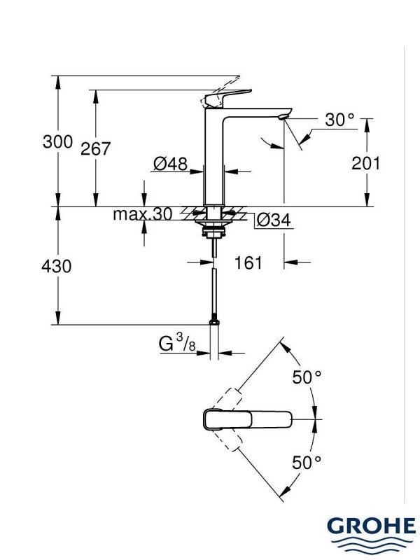 1017292430 Baterija za lavabo GROHE CUBEO XL matt black